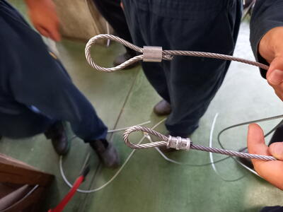 今日は、猟友会の方に教えていただきながら「くくり罠」を製作しました。今までは「箱罠」だけを製作していましたが、箱罠では、近年増えてきたシカの捕獲が上手くいかないので、くくり罠を製作することにしました。