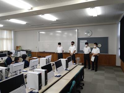 その後、高校生ものづくりコンテストの電気と建築の部門に出場した生徒たちから、大会の内容や反省、今後の目標について話してくれました。最後に、3年生がひとりずつ進路決定への意気込みを話してくれました。その後、明日の学校見学会の準備を3学年全員で行いました。中学生の来校、待ってます。