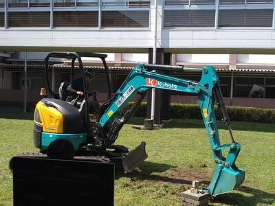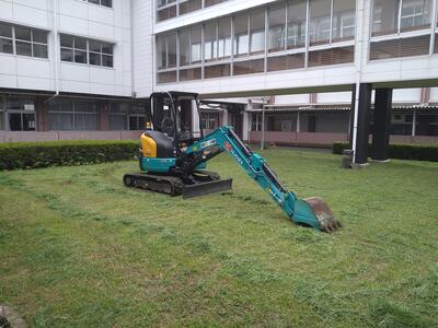 本日、本校で行われた中学生体験入学で、建築コースでは熊本県建設業協会芦北支部の皆さんに、建築の仕事や魅力についての話や、重機やドローン実演を行っていただきました。