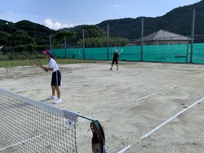 先日の初心者講習会で教わった練習メニューを中学生と一緒に取り組んだ後、初心者と経験者に分かれて、高校生がボール出しやアドバイスをしながらボール出しを行ったり、一緒のメニューに取り組んだりしました。天気が良く、かなり暑い日となりましたが、中学生の元気な姿に触発されたのか、水高テニス部もいつもより元気な姿で練習に打ち込んでいました!もしかしたら来年一緒に水高テニス部として練習する日が来るかもしれませんね!(^^)!