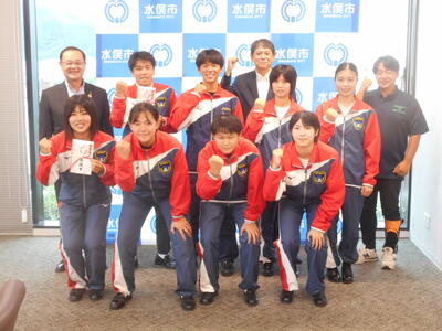 【カヌー部】インターハイ、国体九州ブロック大会出場激励金贈呈式(水俣市役所)