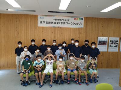 Wood connect project 木育ワークショップ~山林の働きと、木の性質について学ぼう~を水俣市内の小中学生対象に、水俣環境アカデミアで開催しました。この事業は産学官連携事業になっており、産業(林業者・水俣市建具組合ものづくりマイスター)、学校(水俣高校建築コース)、官(水俣市環境アカデミア)が協力して、地域の課題解決や持続可能な地域づくりを担う人材を育成することが目的です。