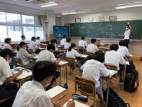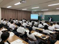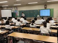 1限目は、人はなぜ勉強するのか、なぜ働くのか、など生徒に問いかけられながら進められました。日本の今後のあるべき姿を考えさせられるもので、柔軟性や豊かな創造力、謙虚な姿勢、誠実な心、感謝の気持ちをもってこれから世界に羽ばたいてほしいという講義でした。