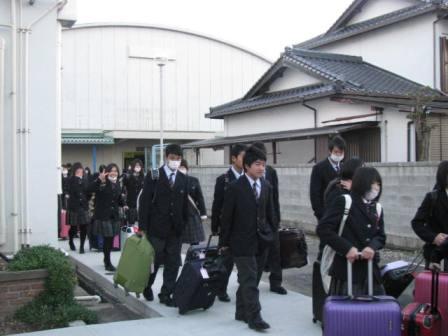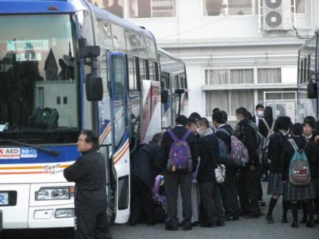 朝7時に体育館に集合し、添乗員の紹介後、それぞれのバスに乗り込みました。これから熊本空港に行き、東京から長野へ向かいます。修学旅行(結団式)