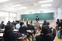11月19日(水)の6限目に2年生の総合的な学習の時間の一環として、水俣市役所の方に来校していただき環境について講演を行っていただきました。水俣市が環境モデル都市として取組んでいる内容などについて詳しく説明を行っていただき、環境モデル都市に暮らす一員としての自覚や、地域貢献に対する意識を高めることができるいい機会になりました。