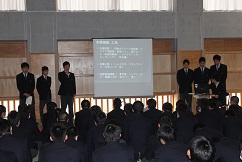 3年生は、2月から家庭学習期間に入ります。今日は、高校最後の学年末考査を終え、家庭学習期間の生活の仕方などについて学年集会で話がありました。その後、教室を中心に掃除を行いました。