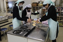 3年生は、明日から特進クラスをのぞいて、学年末考査が実施されます。そして、2月からは家庭学習期間に入ります。家庭科の実習では、お世話になった先生方へ感謝の気持ちを込めてマドレーヌ作りが行われました。