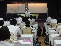 8月5日~8月7日の2泊3日で、3年生の特進クラスの生徒が、天草で行われた地域進学重点校合同学習合宿に参加しました。国語、数学、英語の3教科の講座や合格体験発表を聞いたり、自学を行ったりなど、充実した学習合宿になりました。他校の生徒たちとも交流を深めることができ、いい刺激になったようです。