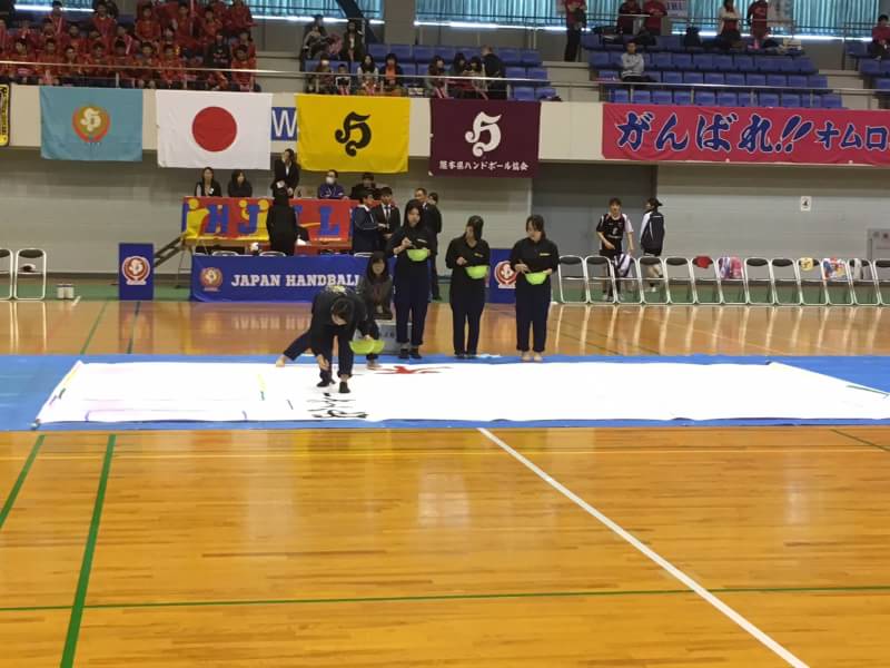 女子ハンドボール全日本大会in水俣 書道部パフォーマンス