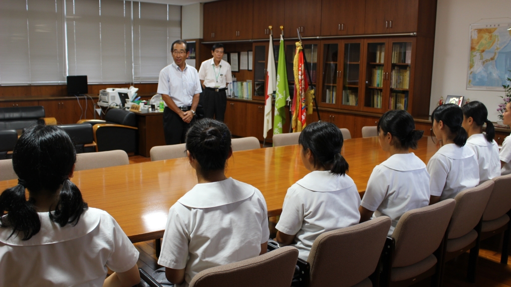 本日、真野同窓会会長をお迎えして、同窓会主催の全国大会激励会が催されました。インターハイに出場するカヌー部と、全国高等学校総合文化祭に参加する放送委員会に向けて、激励のエールをいただきました。