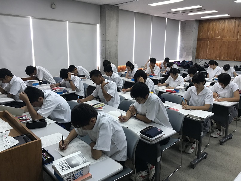 7月24日(火)~26日(木)の2泊3日で、2学年の夏季学習合宿が熊本県立あしきた青少年の家で行われました。日頃の授業よりもレベルの高い実践的な入試問題を解く中で、それぞれの学習面における課題が明確になりました。進路実現に向けてみんなで取り組んでいくという団結力を強めることができた合宿となりました。