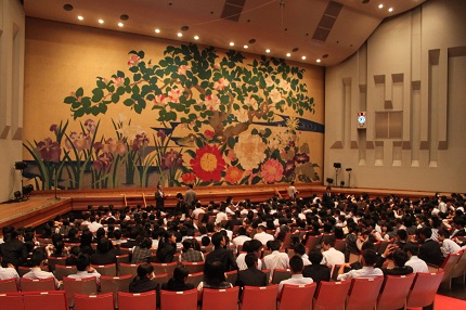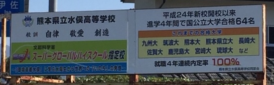 看板には理念やSGH(スーパー・グローバル・ハイスクール)、進学・就職状況などを掲載しています(写真参照)。