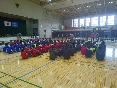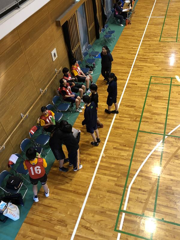 男子はこの時点で予選リーグに2勝したチームが1勝1敗で予選落ちとなりました。2勝したチームはさまざまな高校の3年生・OB連合チームで、決勝でレベルの高い試合を社会人チームと繰り広げていました。生徒たちは目の前のレベルの高いプレーをいかにして自分たちのものにするかを話し合いながら、試合を観戦していました。
