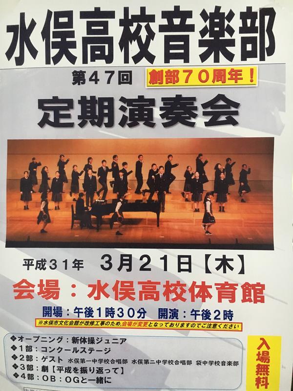 平成31年3月21日(木)、毎年恒例の水俣高校音楽部の定期演奏会を観に行ってきました!