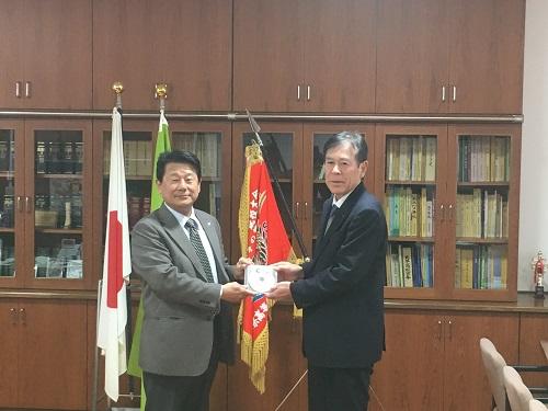 3月20日(水)にみなまたエコタウン協議会が作成したDVDの贈呈式が校長室で執り行われました。本校のSGH事業の一環で、昨年度にみなまたエコタウンについて調査研究を行った2年生14名が、今年度は「環境ビジネス」をテーマにグループ研究をすすめてきました。その過程で協議会と数回にわたって協議を行い、DVD制作に関わってきました。
