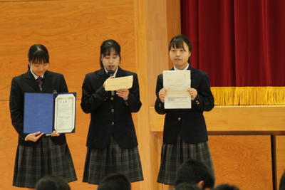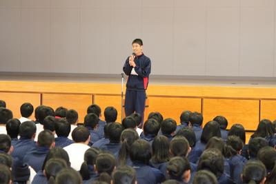 今年度も終わり、すぐに新年度を迎えます。新三年生は集大成、新二年生は学校の中心となる年となります。各個人が自身の目標に向けてよい結果が得られるよう頑張っていきましょう。地域、保護者の皆様におかれましてもご声援のほどよろしくお願いします。