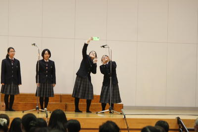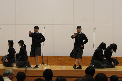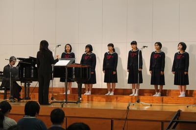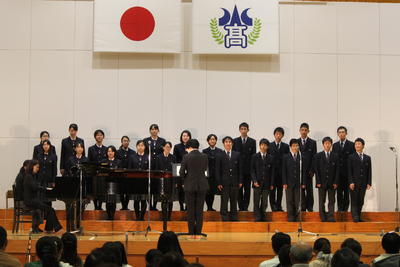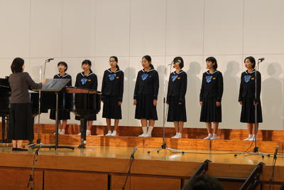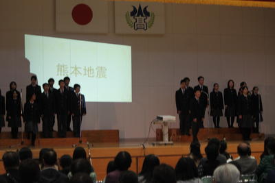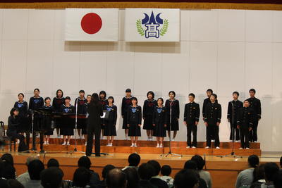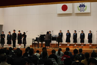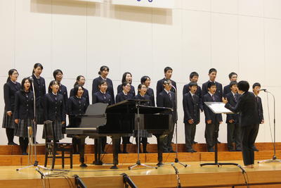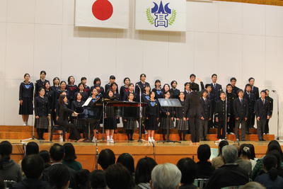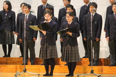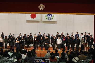 オープニング後は第一部に音楽部によるコンクールに挑戦する曲の合唱、第二部にゲストステージとして水俣第一中学校、水俣第二中学校、袋中学校の合唱部の演奏が行われました。第二部の最後は本校生徒と中学生が一緒のステージに立ちそばらしい合唱を聴かせてくれました。