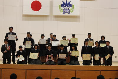本日、水俣高校体育館にて三学期終業式を行いました。終業式に先立ち、各種競技や検定など多くの賞を受賞した生徒の表彰式も行われました。