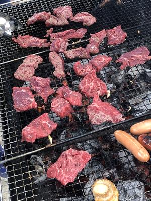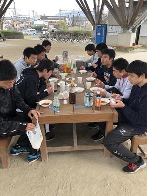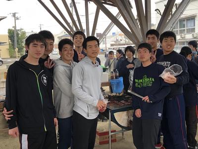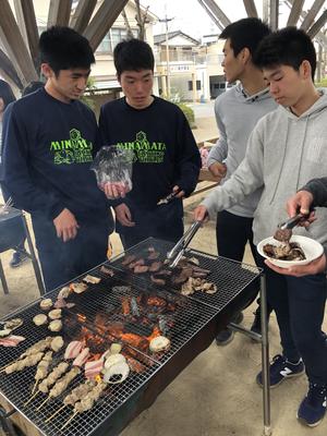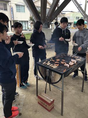午後は保護者の方々の主催で水俣駅前広場でスタミナ会と称したバーベキューを行いました。午前中に運動した分、生徒たちは大量の美味しそうな肉や焼きそばに集まり、すぐに無くなってしまいました。今日のスタミナ会で生徒たちには大量のスタミナがついたと思いますので、今後の練習も頑張っていきたいと思います。