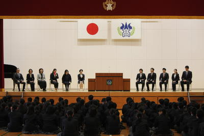 終業式では校長先生から新学年となり新たな気持ちでもう一度自身のことについて考えること、進路に向けた目標を持ち努力をすることの大切さなどのお話をいただきました。