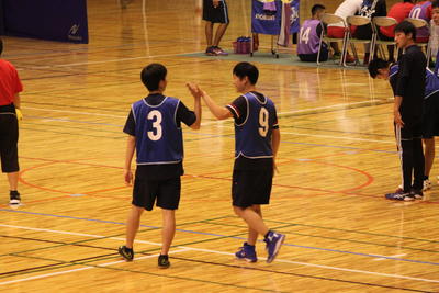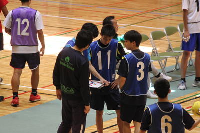 1試合目は武岡台高校でした。序盤からパスカットからの速攻で大きくリードすることができました。中盤ではディフェンスが甘くなり失点しまう場面もありましたが、リードを保ったままゲームを進行することが出来ました。終盤でも攻めの手を緩めることがなく、追加点を決め続け快勝しました。