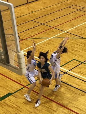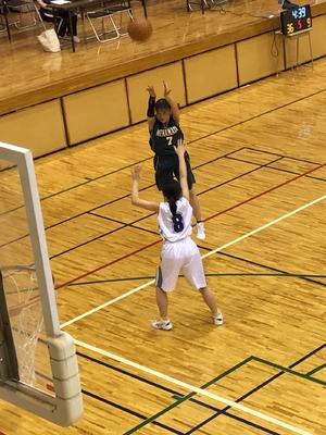 2試合目の対戦相手は出水中央高校です。相手のディフェンスが固く序盤は苦戦しましたが、3ピリで3Pシュートを多く決め10点リード。4ピリではスタートメンバーのファウルが続く中、控え選手がそれを上手くカバーするなど好プレーを見せました。パスカットやリバウンドでボールを相手に奪われる場面が多く、試合終了ギリギリまで緊張感あふれる展開でしたが、なんとか勝利に繋げることができました。