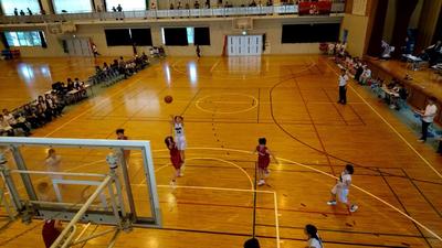 対戦相手の第二高校は強豪校である上に会場も第二高校だったので、大勢の応援が駆けつけていて本校チームにとっては完全アウェイな雰囲気でした。緊張感漂う中、試合開始直後に2年生選手が点を入れ、その勢いでゴールを連続で決めました。しかし、相手の強いディフェンスに幾度もシュートを阻まれ、前半は相手に1点差でリードを許して終了。ハーフタイムでは焦りを見せる選手たちを仲間が励まし、なんとか冷静さを取り戻して後半に突入しました。相手選手との接触プレーでファウルを立て続けに取られ、やっとの思いで運んだボールをドリブルカットされるなどハラハラする場面も。3ピリはファウルを恐れて手が出せずに相手のペースにのまれシーソーゲームになりました。手に汗握る試合展開でしたが、終盤でキャプテンが放った3Pシュートで同点から脱却し、試合終了ギリギリまでタイムアウトを入れ、念願の初戦突破を果たしました!保護者の皆様の熱い応援に勇気づけられました。明日の試合でも健闘できるよう、今夜は体力回復に努めます!