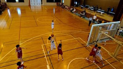 2試合目は出水商業高校でした。試合開始直後にスタートメンバーのファールが相次ぎ、相手にチャンスを与えてしまい、7点リードされてしまいました。しかし、ディフェンスを立て直してパスカットからの速攻や3Pシュートで得点を重ね、2分後に逆転することが出来ました。特にこの試合は3Pシュートの決定率が高く、チームで12本以上決まるという珍しいことが起きました。プロの選手でも決定率が35〜40%といわれる3Pシュートで得点稼げたことは選手たちの自信にもなったと思います。