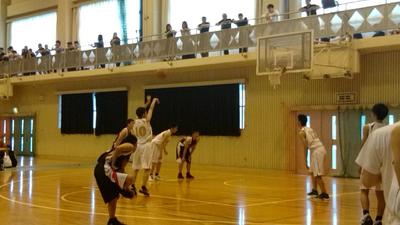 1試合目は鹿児島県内トップ3に入る川内高校と対戦。序盤はリバウンドを粘り強く拾い、3Pシュートや巧みに相手をかわすレイアップシュートで勢いをつけ、点差を広げました。しかし、中盤でファウルを取られ相手にリードを許し、10点差をつけられました。後半は取って取られてを繰り返しながら徐々に点差を縮め、残り8秒でシュートが決まり1点差まで追いつきましたが、惜しくもそのまま試合終了。1点差で敗退し選手たちは悔しさをにじませましたが、強豪校相手に健闘しました。