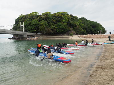 4月28日(日)湯の児ビーチでスタンド アップ パドル(SUP)の大会が行われ、遠くは大阪、奈良から、また本校OB・OGもたくさん三参加され、大盛況でしたカヌー部員は大会運営のボランティアスタッフだけではなく、時には選手として大会のお手伝いをしてきました。