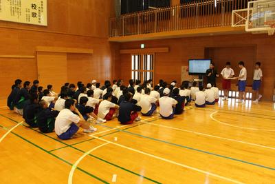 5月22日(水)に、本校体育館において、JICAデスク熊本国際協力推進員の赤星亜朱香様を講師に迎えて、1年生を対象に「SDGs?持続可能な世界とは?」をテーマに御講演いただきました。講演では、青年海外協力隊やシニア海外ボランティアとして活動された東ティモール民主共和国やミクロネシア連邦の様子をはじめ、開発途上国の現状だけでなく、日本の課題を示されました。また、様々な課題の解決策の手段としてSDGsの視点で考えることを提案いただきました。世界のみならず自分の身近な問題に対しても、世界共通のSDGsの視点で取り組むことで、持続可能な社会を構築することが可能だということを学ぶことができました。
