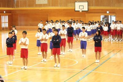 生徒たちの速やかな行動のおかげで時間にも余裕を持って一日が過ごせたようです。これから気温も上がつことが予想されます。水分補給をしっかりして熱中症対策をしてください。生徒の皆さん体育大会楽しみにしています!!