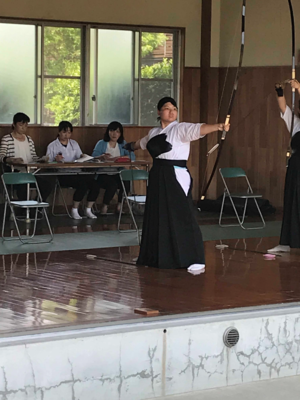 5月12日(日)に熊本市南部総合スポーツセンター弓道場で熊本県国体選手決定大会が行われ、2月に行われた県の遠的大会で優勝した女子生徒1名が参加しました。近的と遠的の2競技でともにトップの成績を残し、見事国体出場候補選手に選ばれました。
