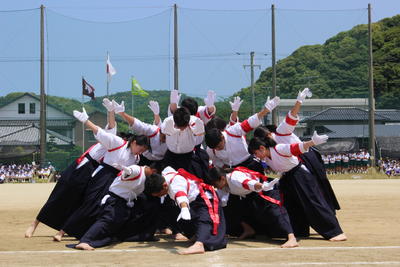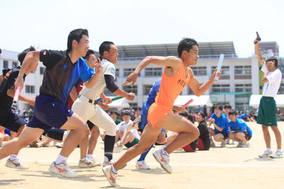 各団優勝を目指して全力で競技に勝ちに行く熱い戦いが繰り広げられました。部活動対抗リレーでも各部活の全プライドをかけた激闘が行われました!!応援団による演舞はどの団もレベルの高い演舞を披露し審査員は点数を付けるのに頭を抱えていたようです。団対抗リレーでは一番の盛り上がりを見せ、特に女子のリレーではトップが走者が変わる毎に入れ替わり最後の最後まで勝利する団が予測できない展開が繰り広げられました!!激しい競争を戦い抜いた生徒たちですが、体育大会最後は3年生のフォークダンスが行われ、最後はみんなが笑顔で終わることができました。