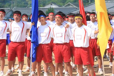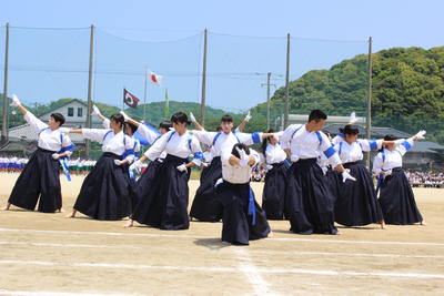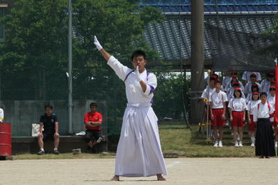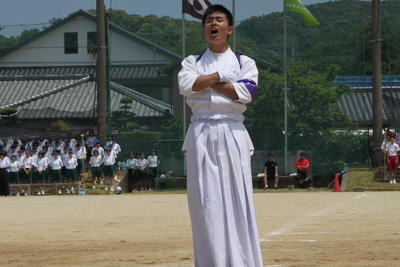 おはようございます。本日は天気も晴れ絶好の体育大会日和となりました。生徒たちは朝早くから登校して出場する競技や演舞の練習などをしていました。