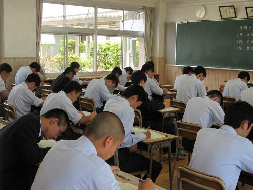 5月15日(水)~17日(金)にかけて中間考査を実施しています。5月11日(土)に体育大会が行われましたが、今週は気持ちを切り替えて中間考査に取り組んでいます。1年生にとっては、入学して初めての定期考査、生徒はそれぞれ真剣に問題に向かっていました。
