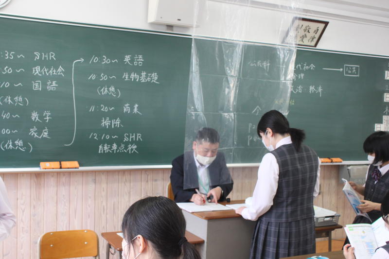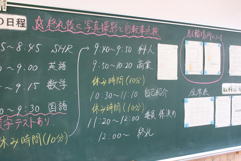 本日は、主にクラス役員・教科係決めや、各教科のオリエンテーションが行われていました。中には基礎学力確認小テストが行われたり、希望者に向けた課題が準備されたりと、高校生として学力向上に向けた取組も始まっているようです。