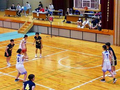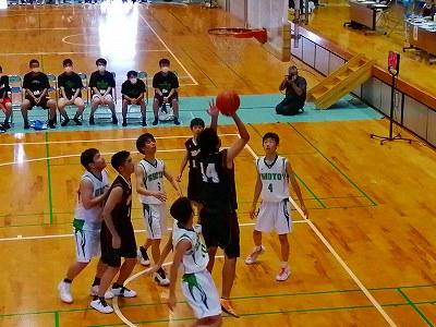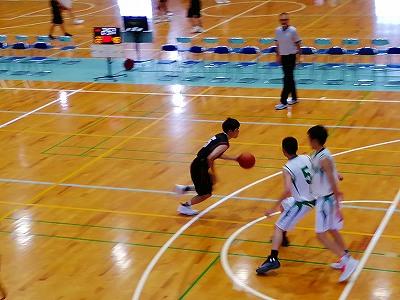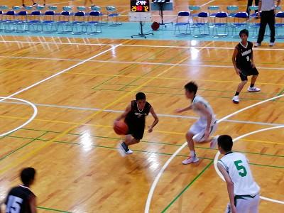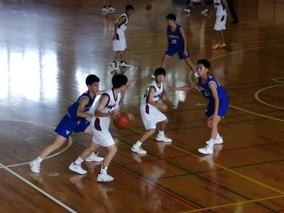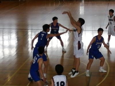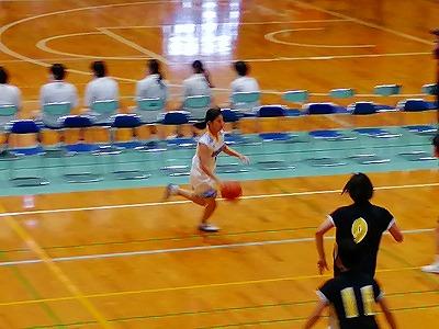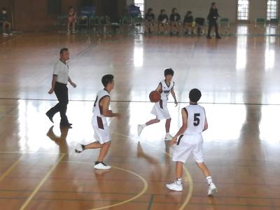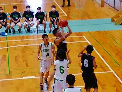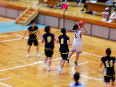 スタートは3年生と1・2年生の主力選手。前半から攻めの姿勢を見せ、3年生が連携プレーを見せて順調に点数を稼ぎます。2年生が素早くボールをさらい何度もゴールを決め、前半終了時点でダブルスコアで優勢をキープ。3ピリは相手のファールを誘いフリースローのチャンスが幾度も訪れ、正確なシューティングで点数を重ねます。3ピリの途中で新部長を含む1・2年生の控え選手5名と総入れ替え!体力あり余る選手たちがゴールを決め、一層盛り上がりを見せます。4ピリはスタメンに再び戻り、3Pシュートも決めて点差を離し快勝!\(^^)/