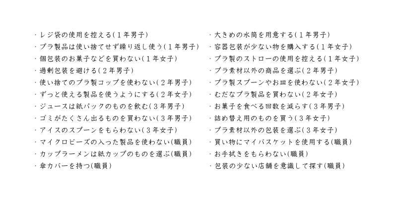 「脱プラ! My宣言!」とは、6月末に全校生徒・職員が、プラスチックごみを減らすための行動を各自一人一人が考え、宣言としてカードに記入したものです。