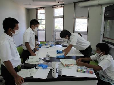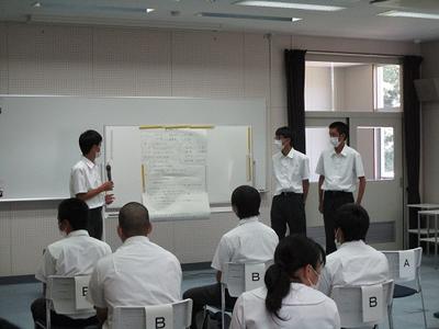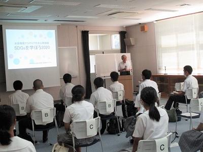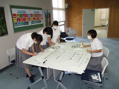 8月18日(火)に水俣環境アカデミアで開催された「SDGsワークショップ」に、2年生特進クラスが参加しました。はじめに古賀所長の講義でSDGsの基礎事項を学んだ後、それぞれが準備してきたワークシートをもとに、SDGsの視点で地域や身の回りの生活における課題と解決策を班で協議してポスターを作りました。今回の学びや視点を、今後のそれぞれの課題研究に生かしていきたいと思います。