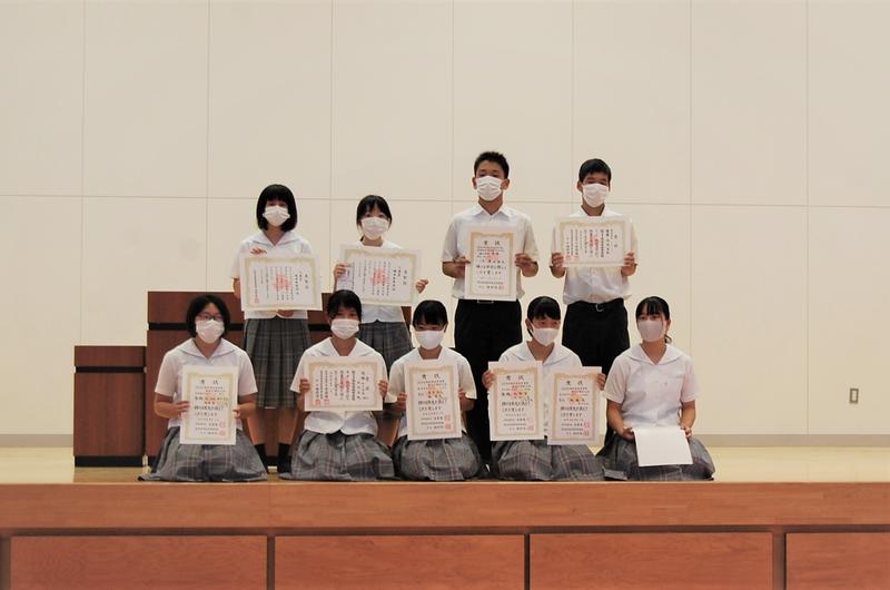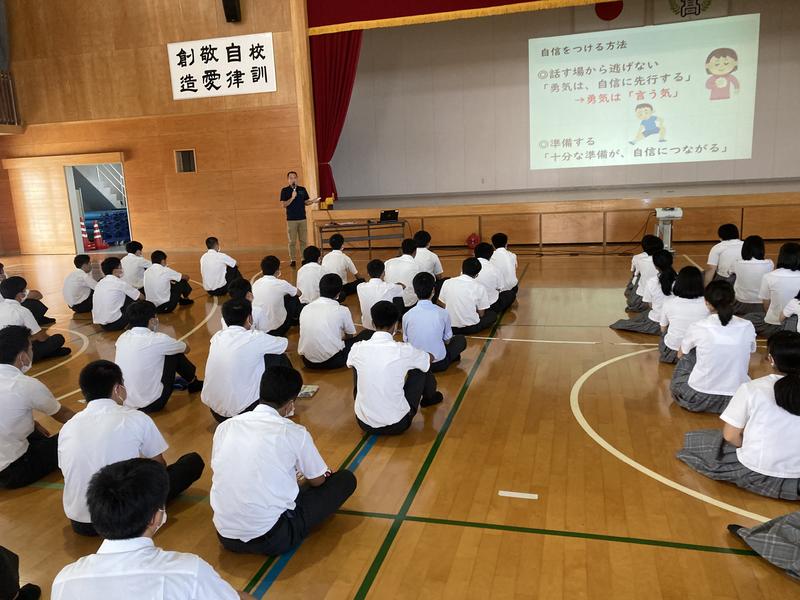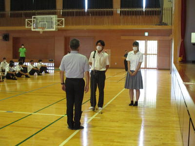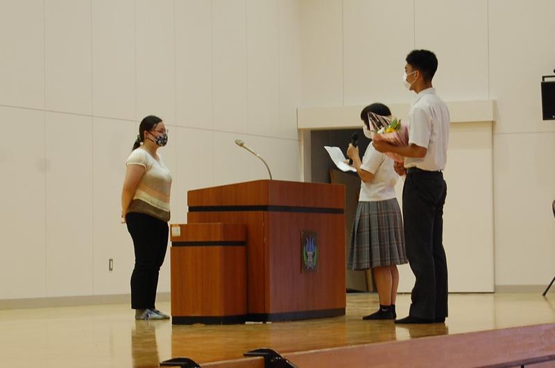 新型コロナウイルス感染症対策のため式典時間を短縮しながら、始業式、ALTのアリシア先生の退任式(9月11日まで勤務)、表彰式、各学年の学年集会等が行われました。