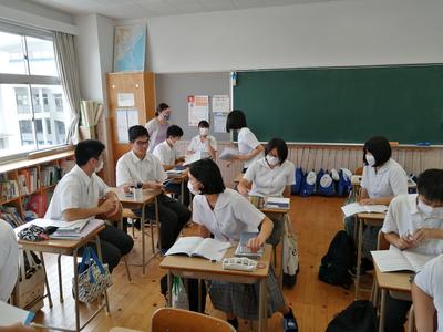 3年普通科特進コースの授業では、プレゼンテーション活動をしています。SGH活動で調査した内容をもとに、水俣市への提案を考えています!約2年間、SGH活動で様々な調査研究をしてきたので、活発に議論ができています!さすがです!