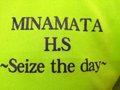 今年は職員ポロシャツを作りました!色は2種類でネイビーと本校カラーの萌黄(もえぎ)を採用!本年度の教育スローガン「今を大切に ~Seize the day!~」の英文をロゴに載せ、職員も心を一つに頑張ろうという思いで作りました。みんなで困難を乗り越えよう!