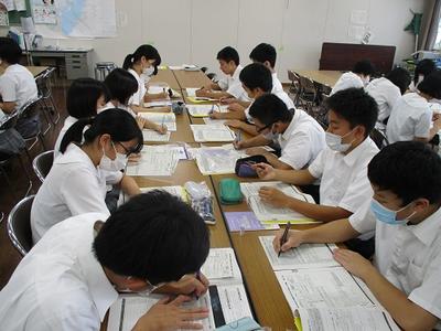 水俣高校は様々な生徒の実情に合わせて授業を展開しています。写真は3年生理系の数学Ⅲと3年商業科・工業科のコミュニケーション英語Ⅱの様子です。よりきめ細い指導のもと学習できています。