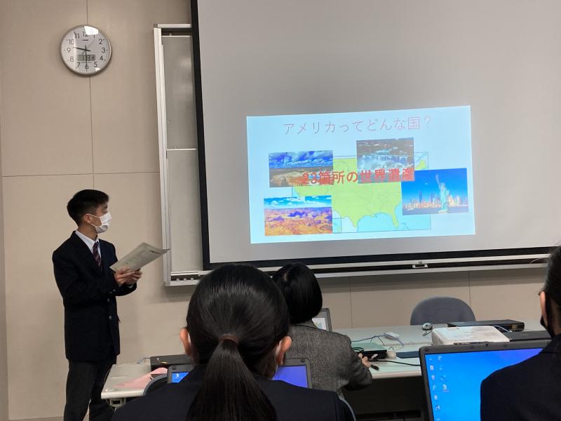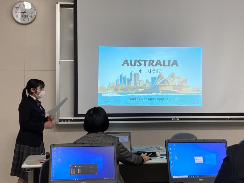 今回はオーストラリア、カナダ、アメリカ合衆国、シンガポールを選択した生徒が発表し、ロケーションや宿泊地、食事などの情報を提示してそれぞれの旅程の魅力を伝えていました。それぞれの土地に人々の暮らしがあり、そうした営みを様々な角度から捉える貴重な機会となっていたようでした。