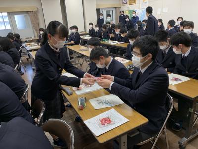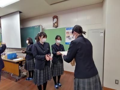 出発前には3年商業科の生徒が手作りした必勝守と色紙が手渡され、現地に応援に行けないクラスメイトや先生方から激励メッセージが伝えられました。受験生たちは、これまでも手作りの共通テストカウントダウンカレンダーや受験必勝のお菓子で、受験への意識を高めてきました。