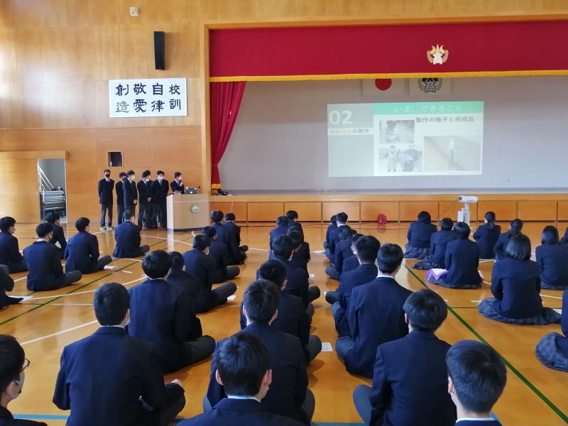 本日、機械科と電気建築システム科の3年生が、課題研究発表会を行いました。