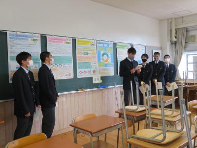 各教室に分れて39種類のポスター発表が行われました。環境問題だけでなく、芸術や工学など様々な分野について各グループでまとめました。その発表内容は興味深いものばかりで、勉強になりました。オーディエンスの1年生が積極的に質問していて、活気あふれる有意義な発表になりました。