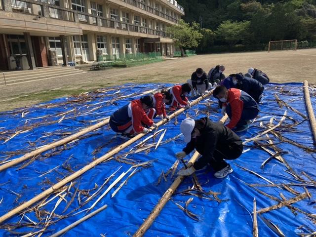 水俣市の青年会議所の皆さんのご指導のもと、支柱の杉の木の皮むきや枝打ち、そして設置まで、日頃水俣川で練習させていただいているお礼の気持ちを込めて作業してきました。