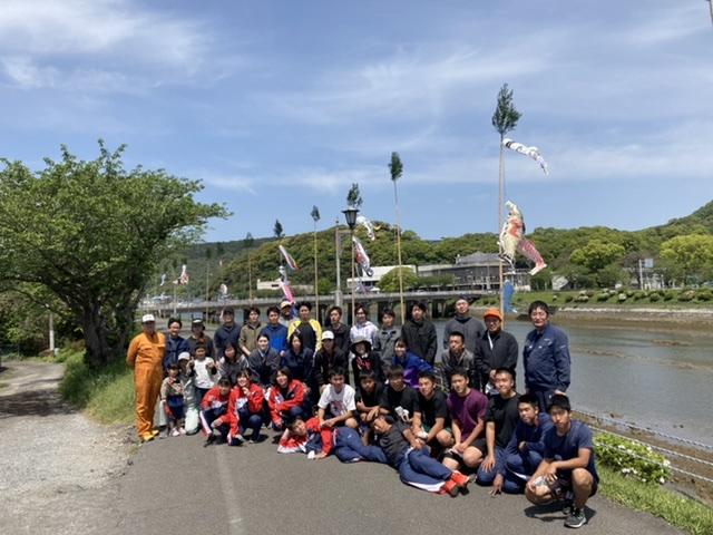 毎年水俣の春を彩っている水俣川沿いのこいのぼりを、カヌー部もお手伝いして設置してきました。